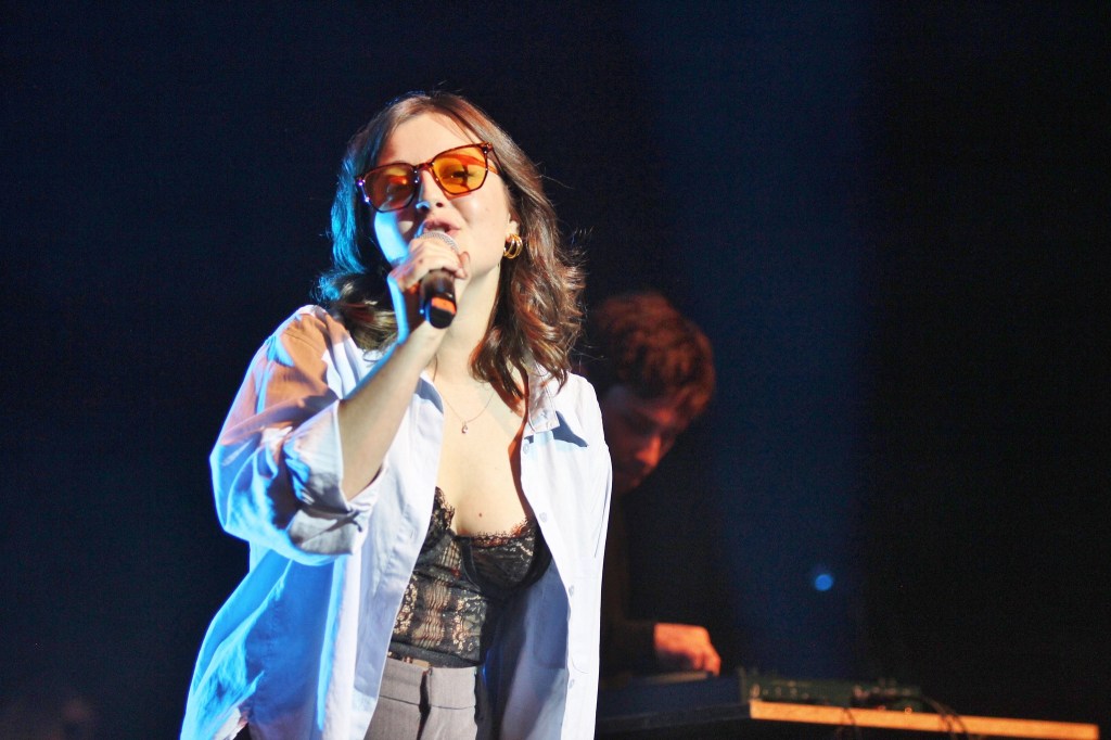 L’ouverture du show se fait avec Lucille, jeune artiste toulousaine issue du duo Stairs, qu’elle formait avec son frère Samuel. Connue pour avoir fait de nombreuses reprises de Madonna, Taylor Swift ou Cher, mais cette fois c’est accompagnée de sa guitare qu’elle présente au public quelques chansons de son EP sorti en février dernier.